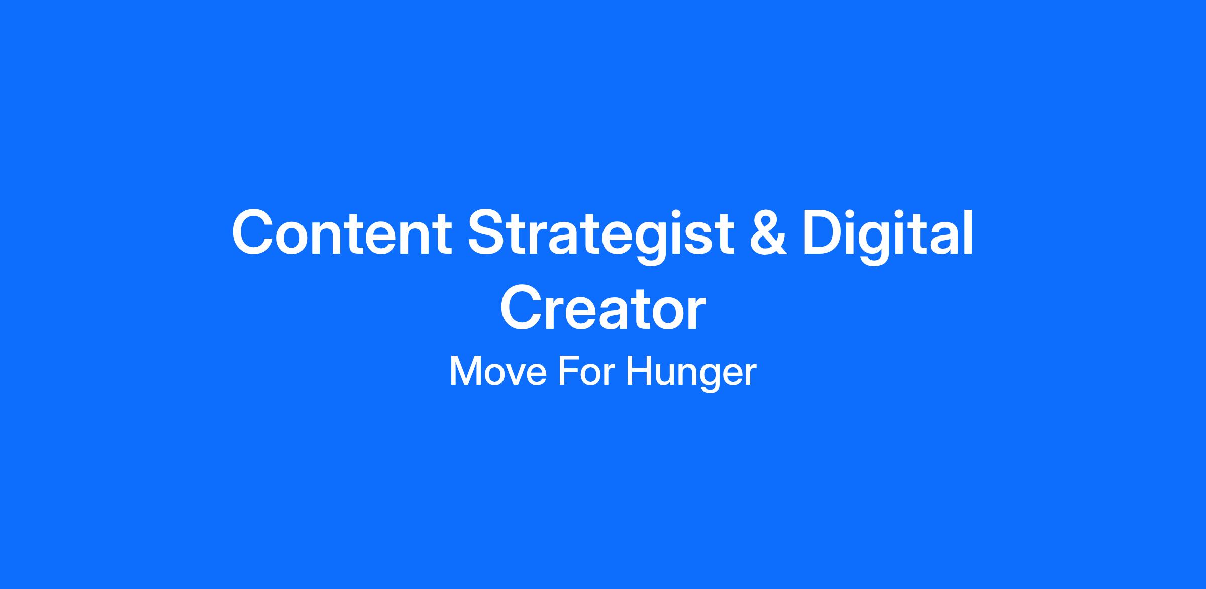 We’re fun, innovative, and impact-driven—and we’re looking for a Content Strategist & Digital Creator to help us tell our story and inspire people to join the fight against hunger.