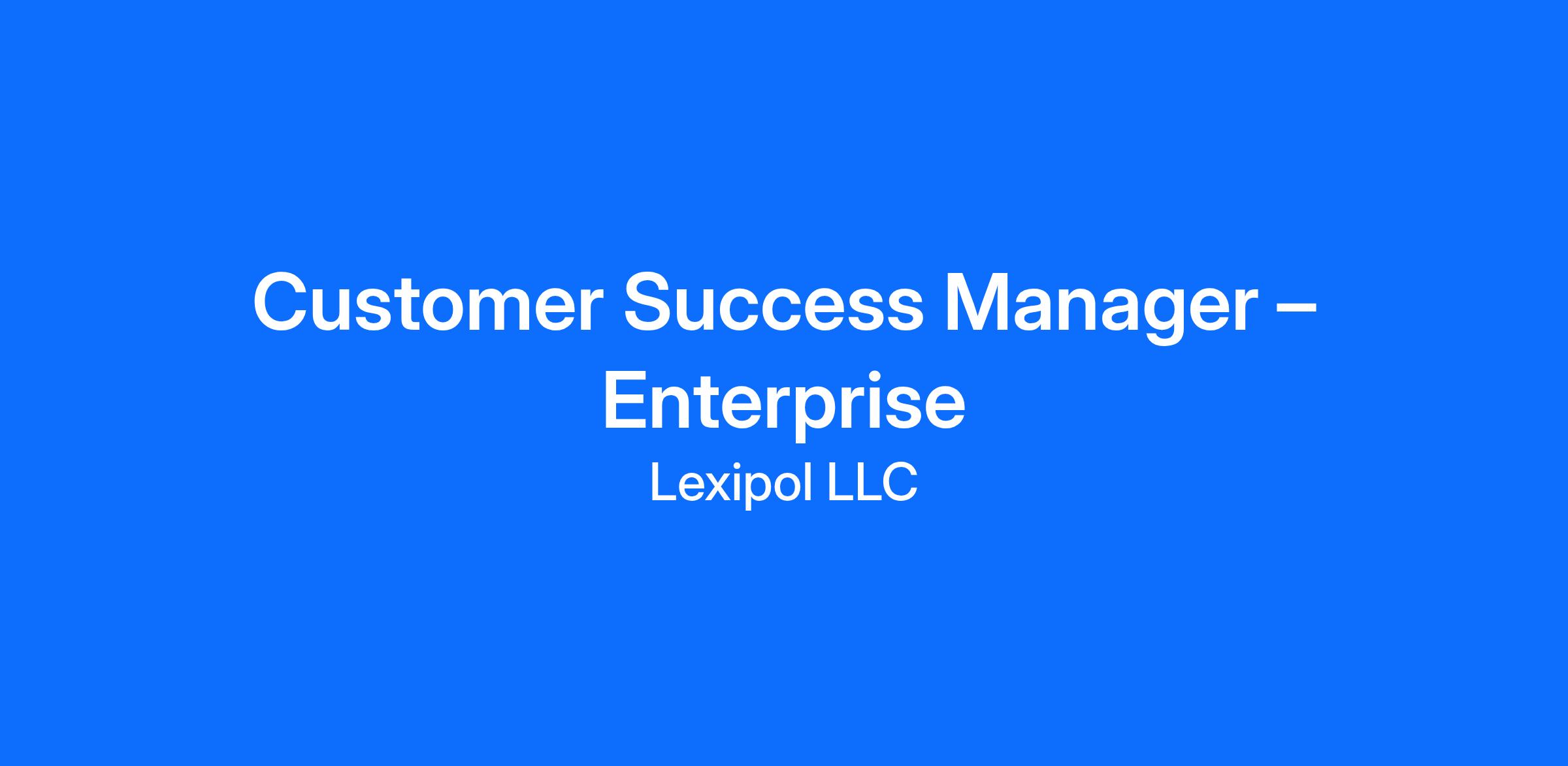The Role Lexipol is seeking an Enterprise Customer Success Manager to own and grow relationships with our largest, most complex police and fire customers. These accounts represent strategic, high-value partnerships and require a consultative, executive-level approach to success, adoption, retention, and expansion.