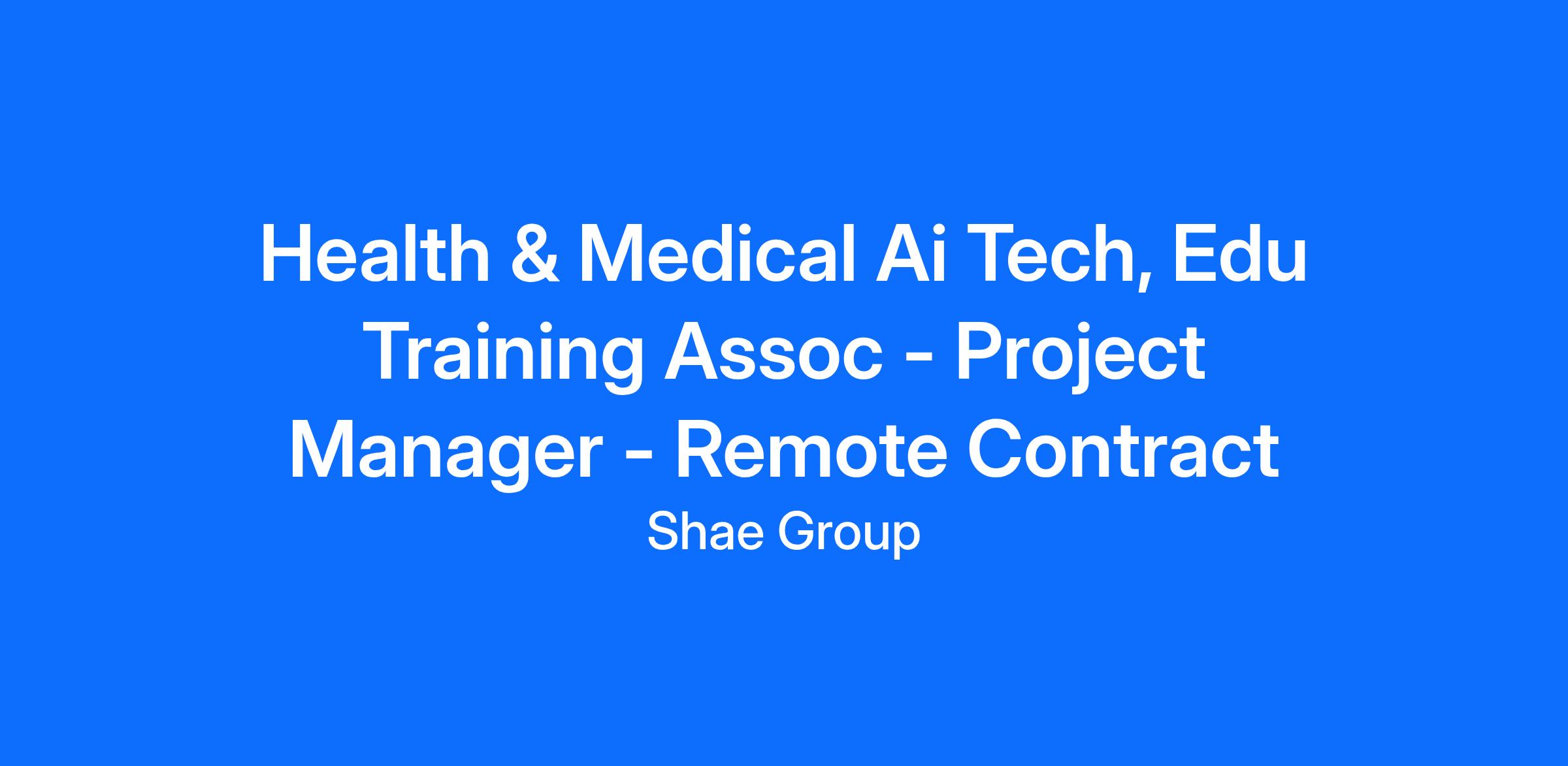 Title: Health & Medical Ai Tech, Education & Training Assoc - Project Manager — Remote (Contractor)