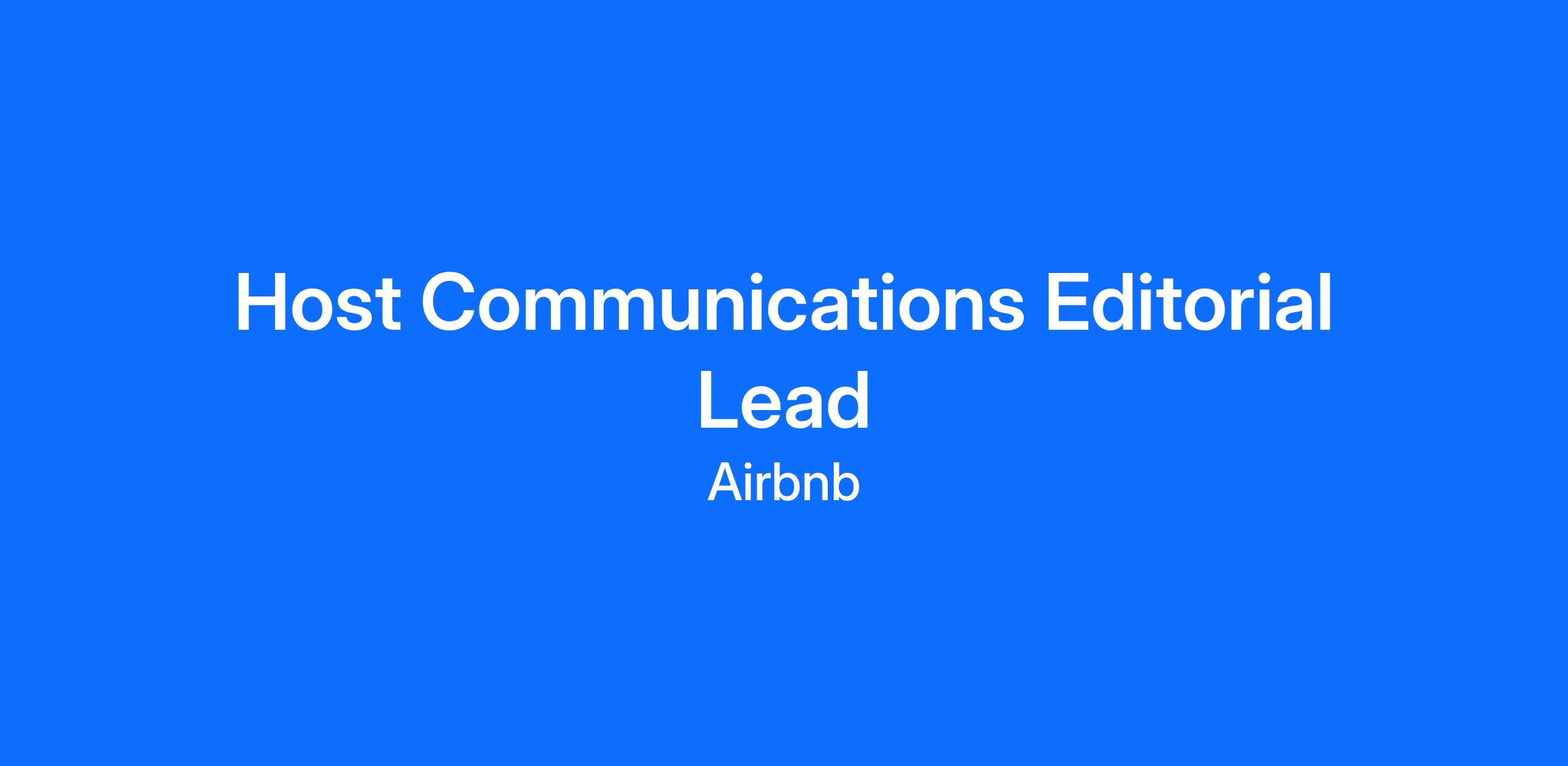 Airbnb is seeking a creative, strategic, and detail-driven Host Communications Editorial Lead to develop scaled communications and campaigns for home, experience, and service hosts. You’ll blend editorial strategy, deep writing and editing expertise, and an insights-driven approach to deliver actionable, engaging content across formats, including articles, emails, and in-product education.
