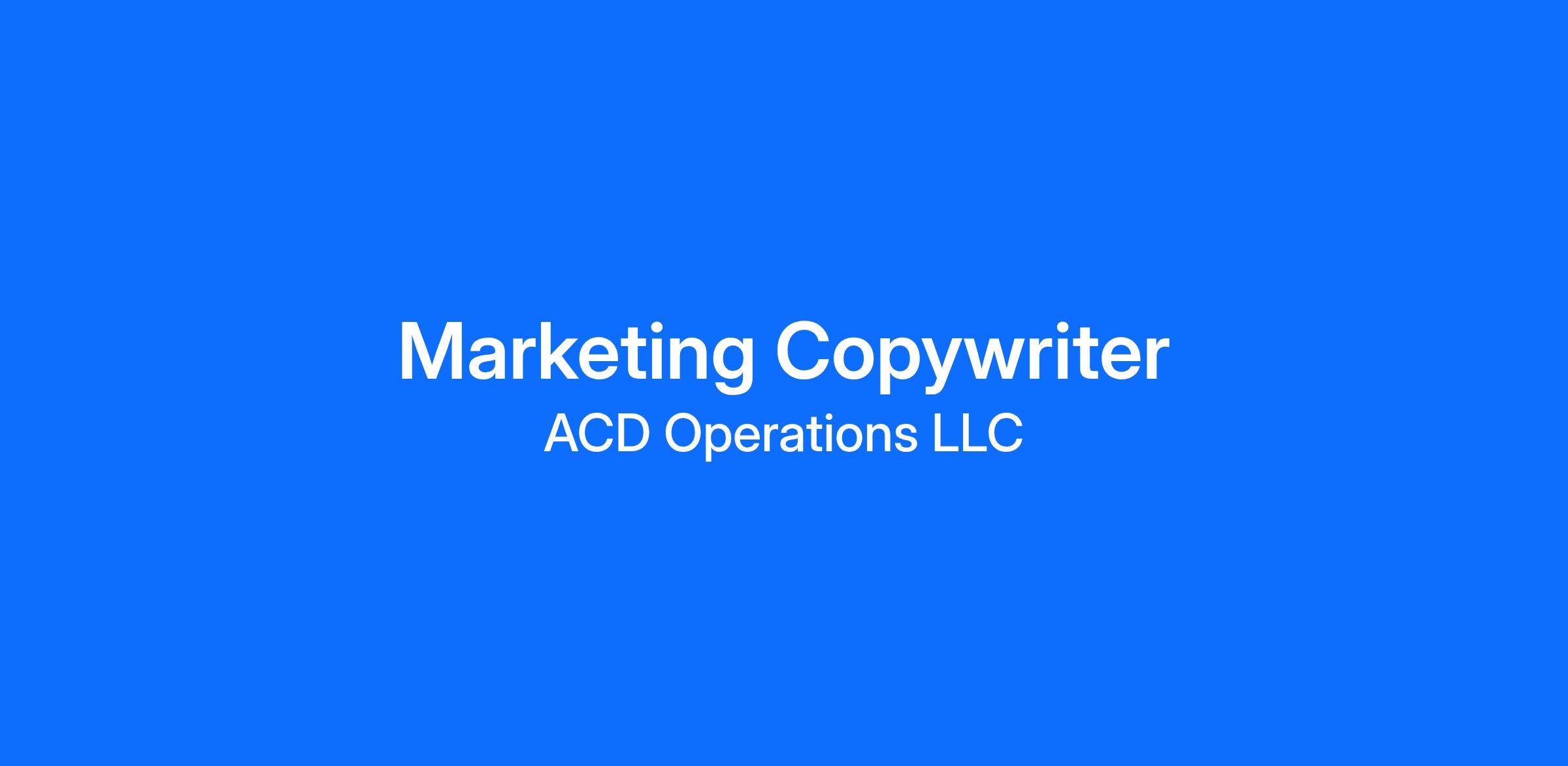 We are hiring a Marketing Copywriter to join our fully remote marketing team. This role is responsible for writing, editing, and producing high-quality content that educates our audience, supports product and campaign initiatives, and elevates ACD’s position as a trusted voice across the architecture, engineering, and construction industry. You will collaborate with cross-functional teams to bring stories to life through blogs, white papers, reports, webinar scripts, learning content, and more.