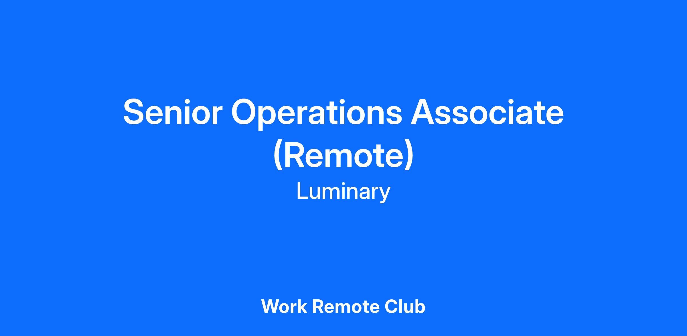 Role: Senior Operations Associate